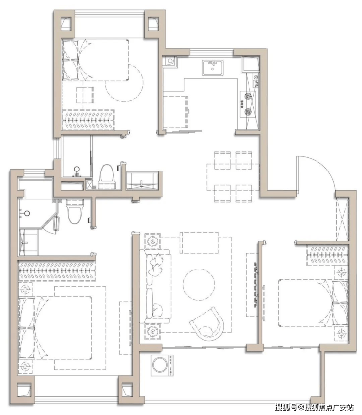建面约100㎡3房2厅2卫▼