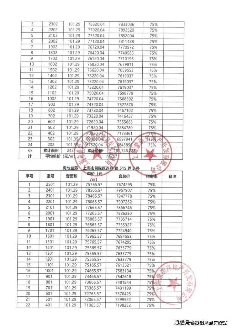 一房一价表