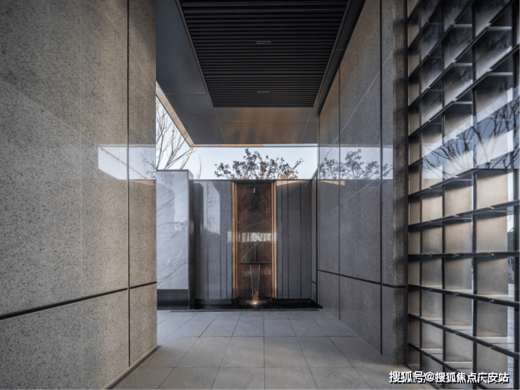 第五重:下沉庭院打造一体式景观,墙面流水至地面,结合水中花池营造出纯粹的自然之境。