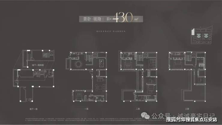 项目别墅是大头,且都是拼接型别墅:地上三层,地下一层,从430㎡-560㎡-690㎡三种,都是四房四厅五卫的设计。
