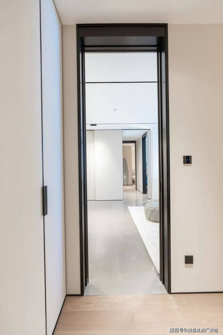 走到样板间门口,这个顶天立地的门,通透感极强。