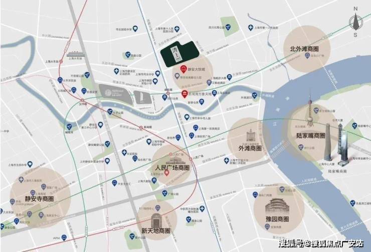 项目附近的福新汇-1层到4层包含全生活业态,东侧华润苏河湾打造的中央公园中,地下部分全部为城市商业,还有静安大悦城、人民广场、静安寺等繁华的商圈。