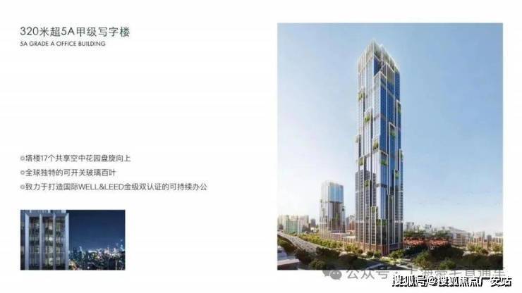 湾上本身是一个综合体项目,该地块由高层住宅、叠加别墅、办公塔楼及附属商业裙房组成。可售部分包括: