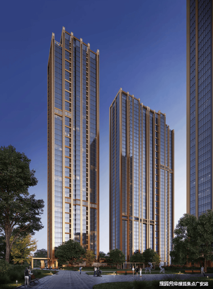 超高层住宅部分由天华建筑事务所设计打造,参考曼哈顿玫瑰峯汇Rosehill的建筑立面,现代简约线条搭配复古的色调形成简约高奢的风格,历久弥新。