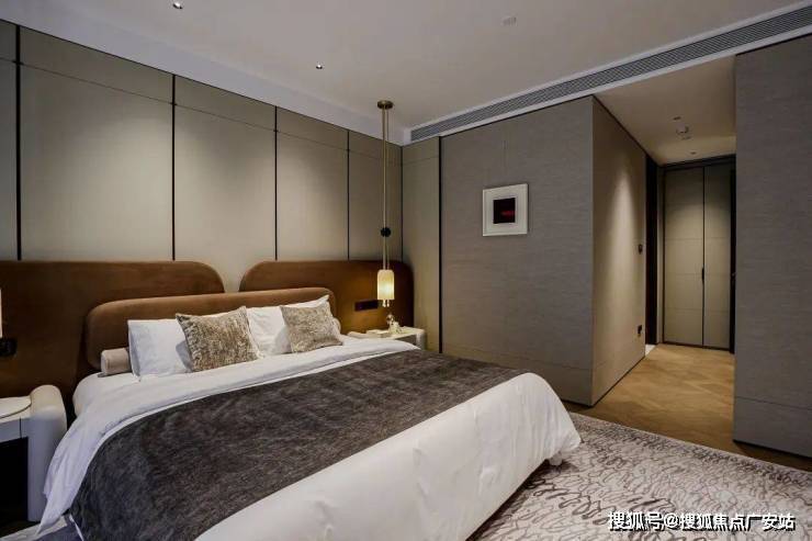 私密场域依旧保持静谧,黑白色基础上搭配了更多的色彩,例如深棕、浅紫等,艺术品的衬托深邃迷人,热络了家的氛围。