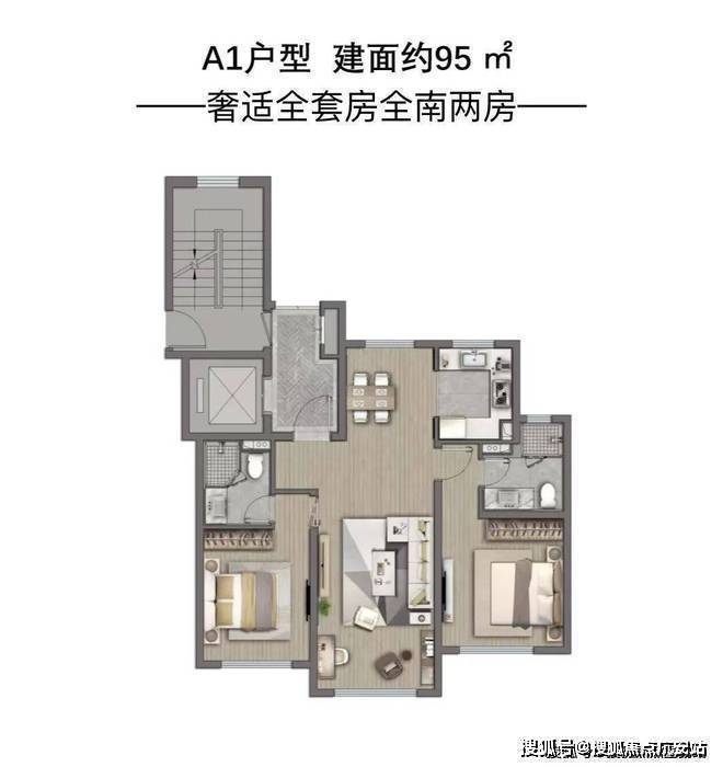 二,不管建面约95㎡2房还是约104㎡3房,都做了“双南套房”。