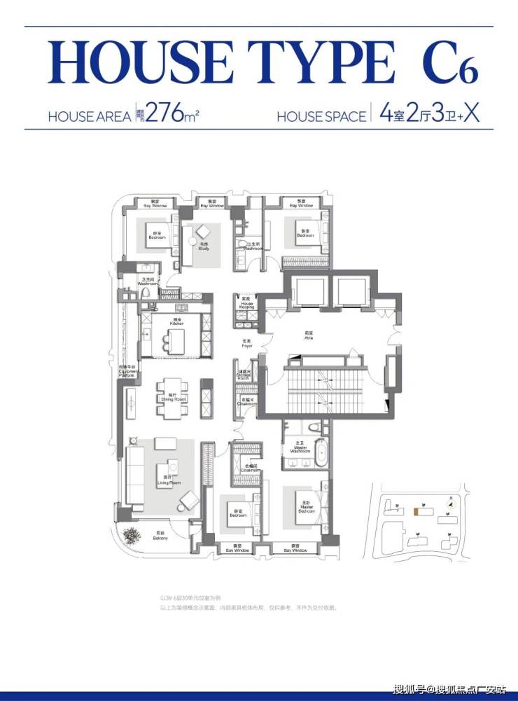 此外,客餐厅一体化、约 270° 弧形观景阳台配全卧飘窗皆为标配。