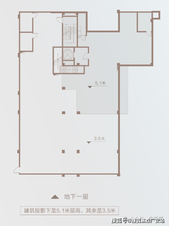 地下社交:层高约5.1m、局部约3.5m,可作企业康养乐活空间