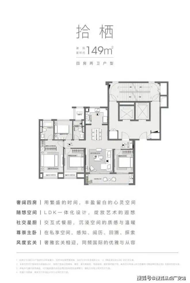 奢阔四房,多功能空间设计,满足各阶段居住需求;LDK一体化设计,餐客厨相连,串联起随心从容的生活;交互式岛台,乐享家庭共享式烹饪场景;尊崇主卧,拥静谧私享空间,无尽舒享生活仪式感;奢雅玄关,同频国际的优雅与从容。