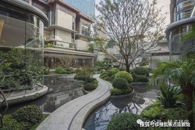 进入小区,直面中轴的下沉式庭院,融合瀑布、水景、植被与观景平台,立体化景观空间,定睛一看,豪宅气质扑面而来!