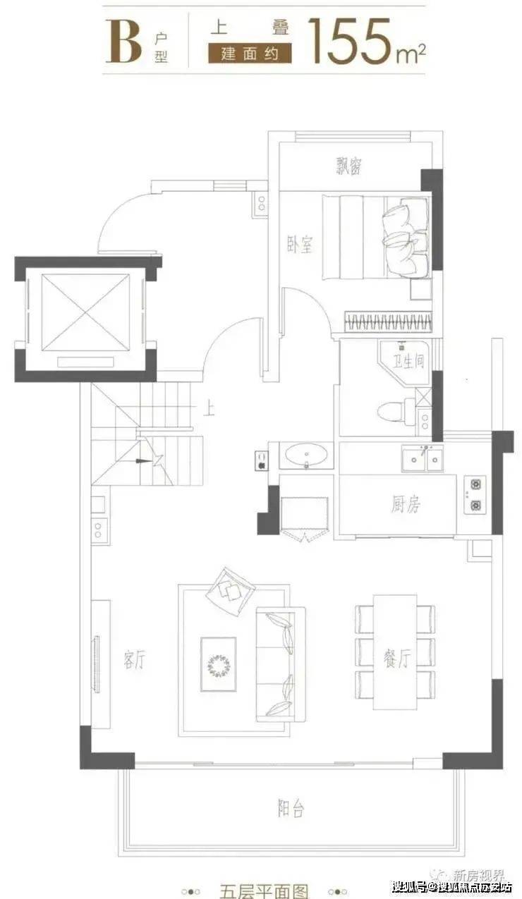 ⭕ 约6.55米面宽双层阳台,双层270°转角飘窗
