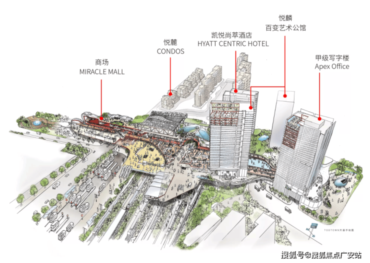 中国地标级TOD项目,在14.5米高的空中大平台,在大平台之上集合所有的商业开发业态——