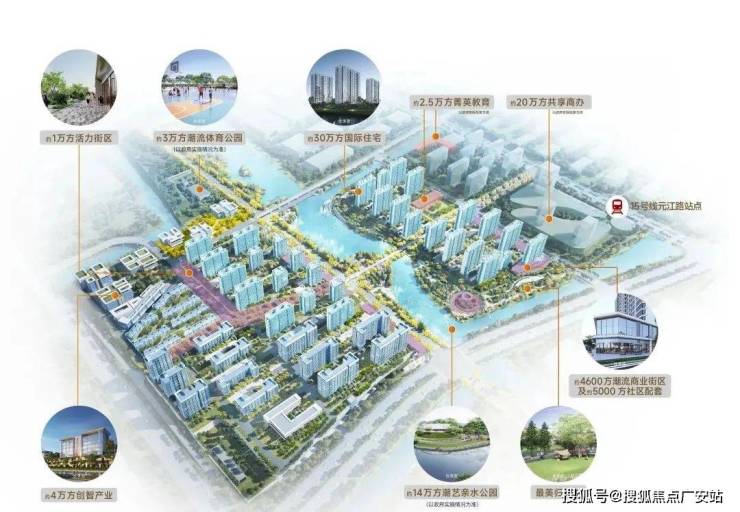 将公园及天然水系引入社区,约3万方运动竞技公园+约14万方滨水艺术潮流公园+城市绿地,以约20万方滨水双公园,构成一幅自然生态下的国际健康社区底盘。