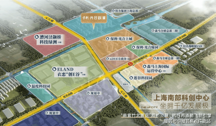 保利·光合上城位于闵行主城颛桥板块,北接国家级科学园区漕河泾和徐汇新晋高水平科学策源地华泾,南接国家级科学园区紫竹和大零号湾创新创业集聚区。本身就占据了南上海科创产业的极核位置。