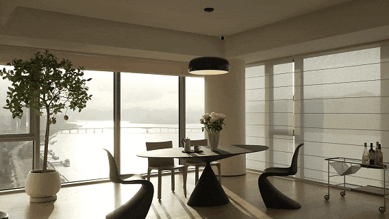 这是为美术生打造的270度环幕江景大平层,高楼层赋予的辽阔视野,江景成为空间的天然背景。