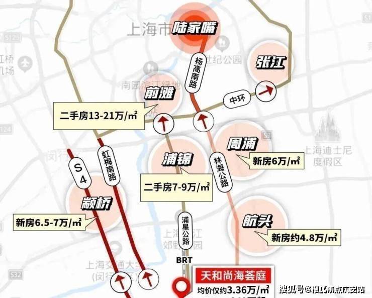 ② 在浦星公路、林海公路便捷交通加持下,项目与大浦东及闵行的价格剪刀差巨大,性价比超高