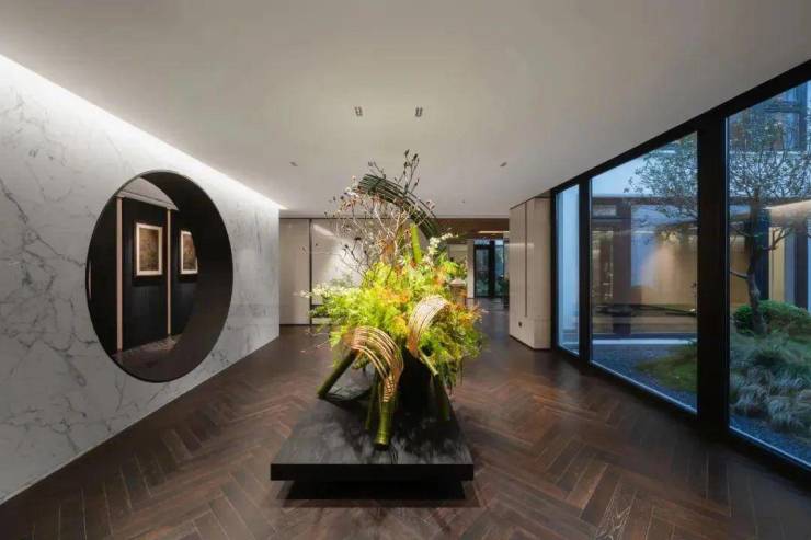 堪称神来之笔,它为这东方院落注入了自然的灵魂:每个房间,朝内永远有一片落地玻璃框出的园景。