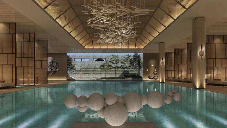 更巧的是,湖山天境的园林设计师,正是操刀西子湖四季酒店的宋淑华。甚至园区内同样有国际五星级酒店:湖山天境和伦敦百年酒店集团朗廷合作,引入它旗下的高奢品牌康得思酒店。酒店规划有米其林餐厅、健身房和恒温泳池等配套,相当于为业主内置了一个“超级会所”!