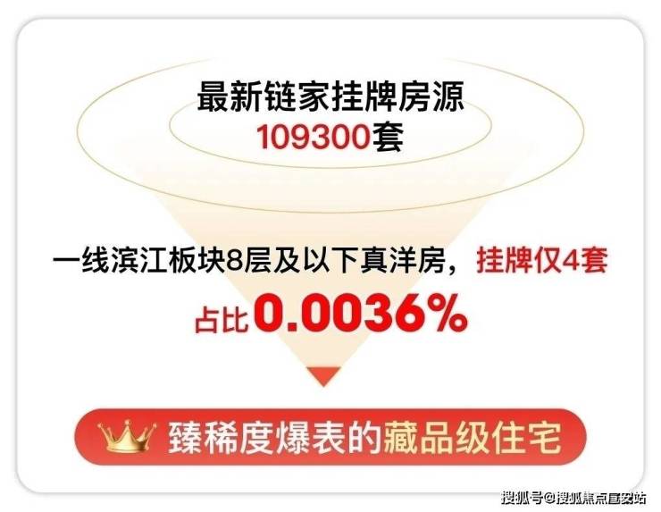①、链家网可对外展示的挂牌有约109300套,一线滨江板块(杨浦滨江、黄浦滨江、徐汇滨江、北外滩、陆家嘴、世博、前滩)10年房龄内8层及以下洋房只有4套挂牌。