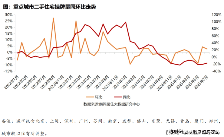 另外值得注意的是,在二手房挂牌量上升的同时,去化周期同样连续2月提升。报告显示,7月重点城市的二手房去化周期为16.8个月,环比上升2.7%,同比下降17.2%。