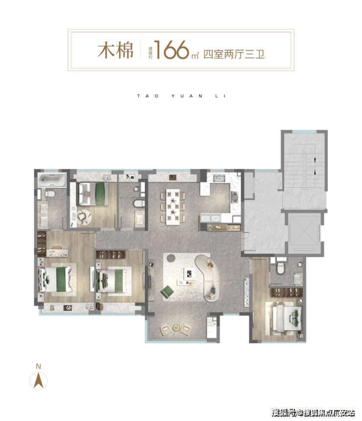 南地块168套,户型为:建筑面积约106㎡、166㎡