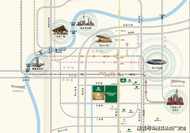 并且凭借区域内的中环线、S20 、11 号线等道路交通设施。把康桥和前滩、张江科学城、迪土尼、浦东国际空港、外高桥自由贸易区等五大引擎连成一条黄金轴线。