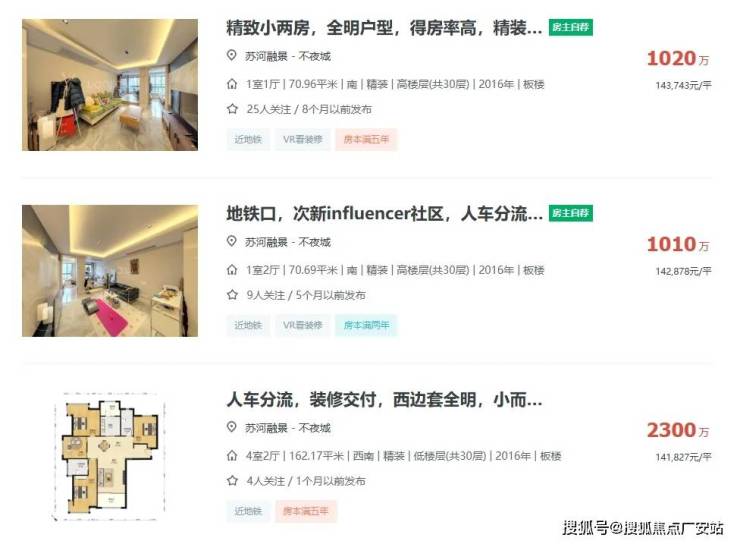 苏河融景自身也有二手挂牌,无论是70㎡左右的小户型还是160+㎡的大户型,挂牌均价都超过14万/㎡!