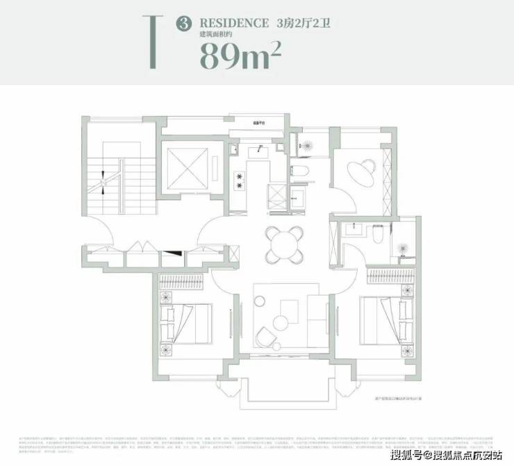 厨房、餐客厅、阳台形成直线通风廊道,南向三开间+宽尺客餐厅,轻松容纳二胎三代家庭的日常;