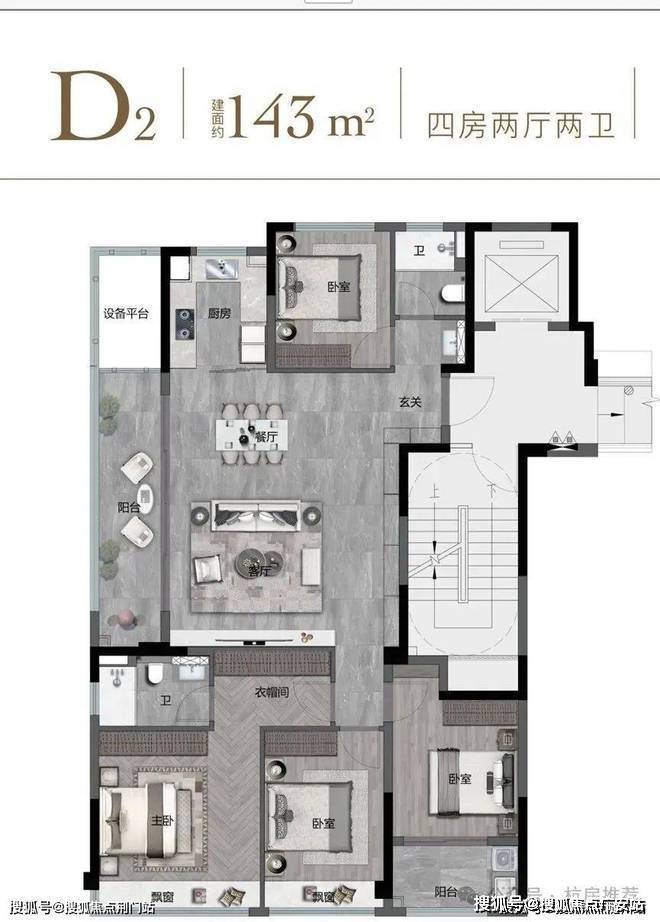 如果说前面的户型更多的体现了实用性,那么143方的户型还实现了尊贵感。