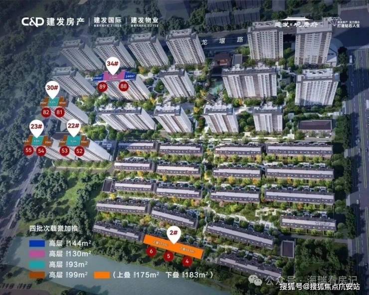 首开195套房源,约93-143㎡3-4房高层(32#、39#)以及约147-183㎡叠墅(14#、15#、18#、19#)。
