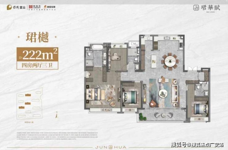 :152㎡、156㎡、190㎡、222㎡(均为四房以上设计,主卧套房化)