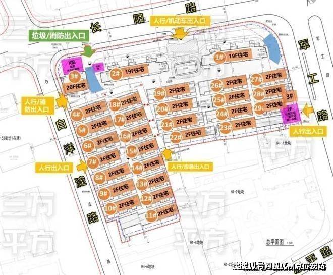 在与H4-8地块相接处,设置了一个人行兼应急出入口;在军工路上设置了一个人行出入口。