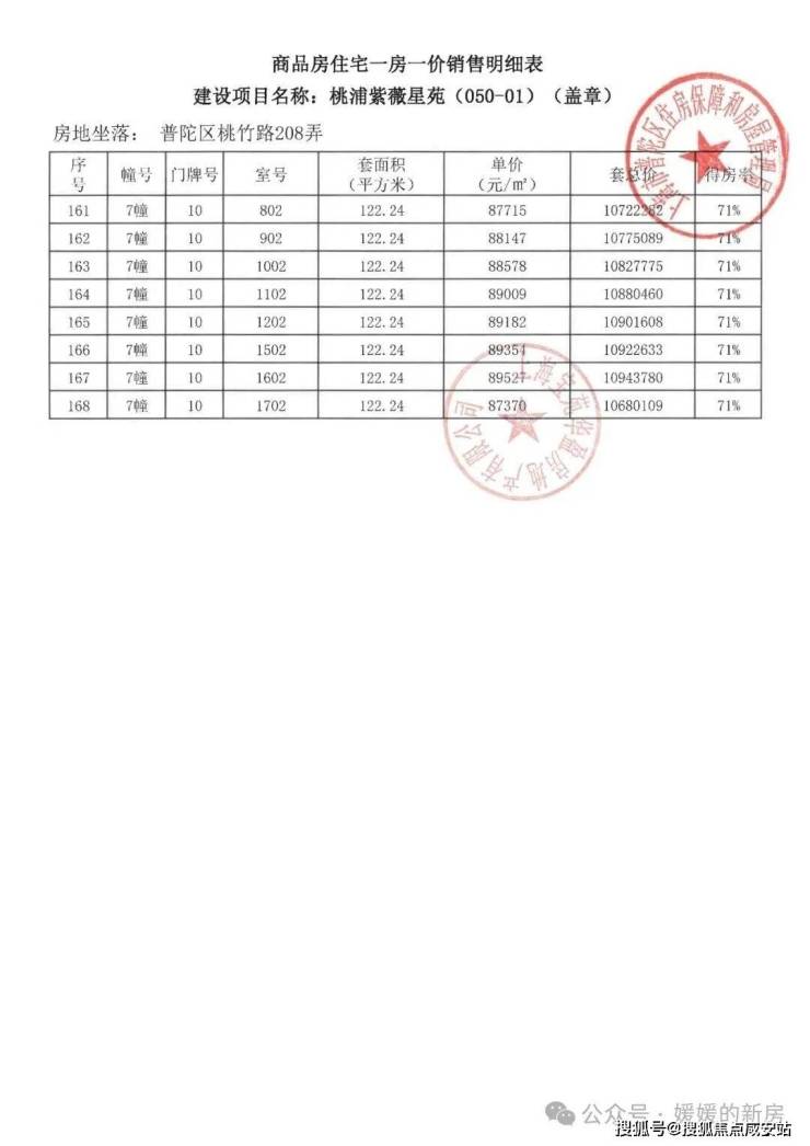 宝华紫薇之星一房一价表▼