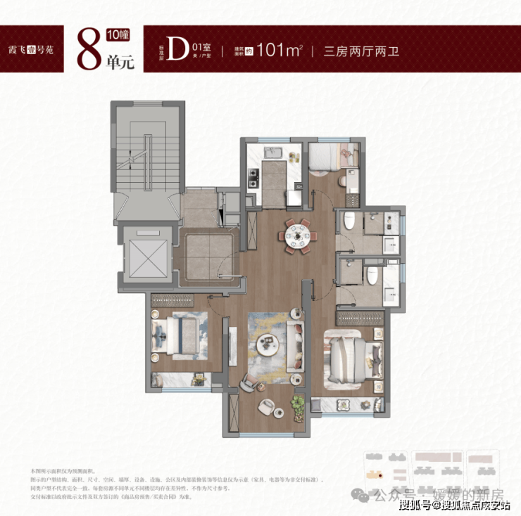 建面约101㎡3房2厅2卫: