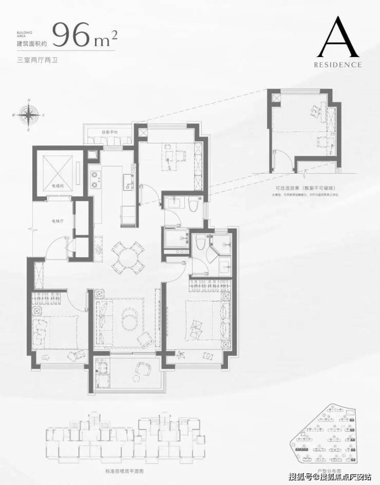 建筑面积约96㎡3房 经典飞机户型 精致进阶