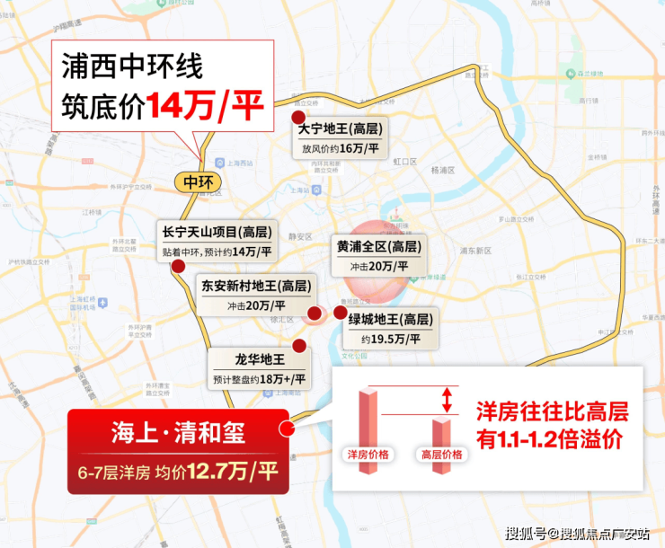 其实项目12.7万/㎡均价出炉时,市场已被瞬间点燃,我也觉得价格很惊喜。一方面,随着大宁地王放风价直指16万/㎡,长宁天山紧贴中环的项目预计14万/㎡,可它们都为高层产品。