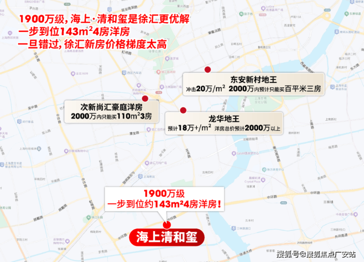这批洋房总价预计1700-1950万,于预算1900万级想买徐汇的小伙伴,海上·清和玺是“唯一且更好”的选择。东安新村地王预计冲击20万/㎡,2000万内最多也就买一套百平米小三房;在清和玺能多买约43平,从三房升级为四房,还能享受洋房的低密舒适。龙华地王有小部分洋房,按单价18万+/㎡算,洋房预计2000万以上。次新尚汇豪庭,2000万内只能买约110㎡3房。对比之下,海上·清和玺是目前徐汇唯一1900万级一步到位约143㎡4房的机会!一旦错失,未来的徐汇新房价格梯度非常高,关键大热的徐汇,你未必一定能买到,那样机会成本就很高!不如率先抢占清和玺,低密洋房买到才是最重要的!