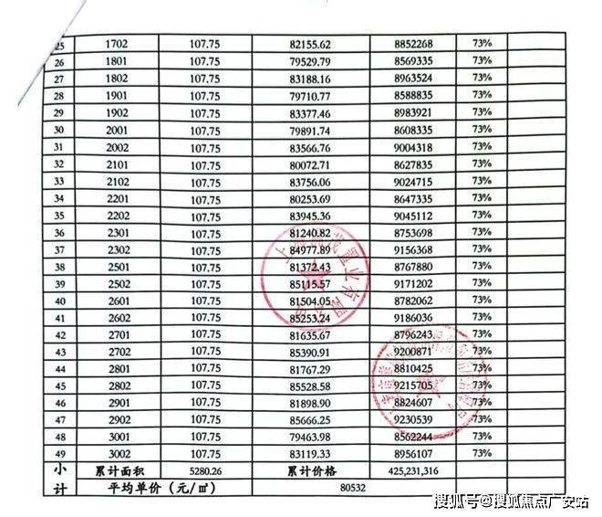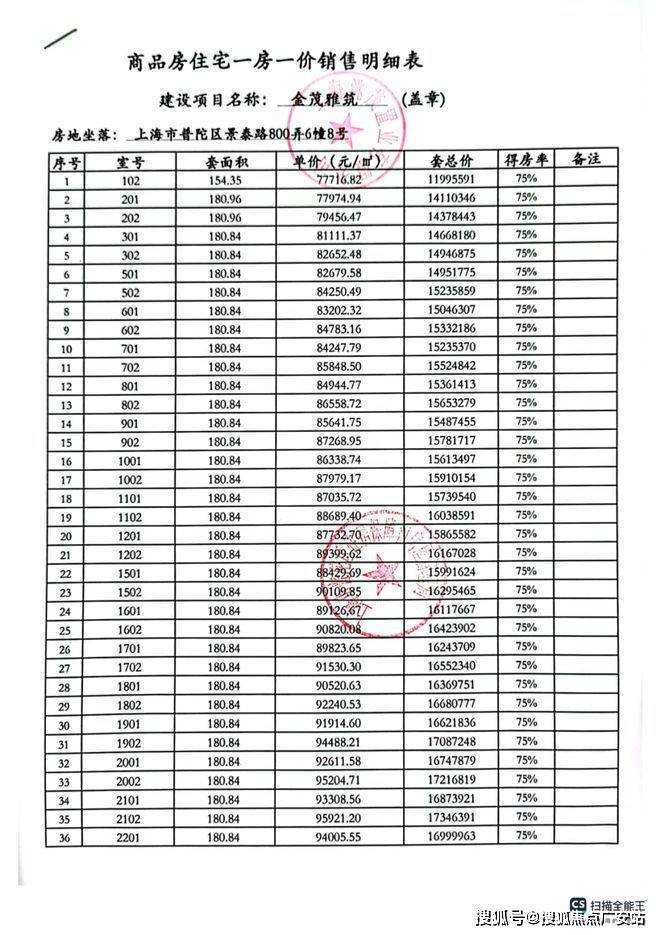 一房一价表: