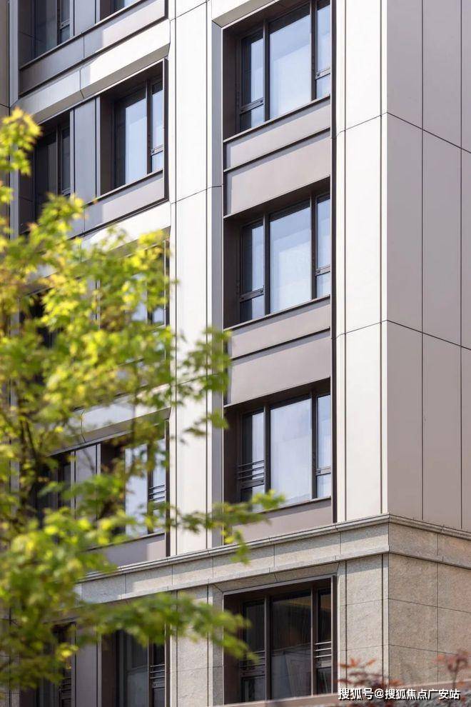 进口的花岗岩石材、配上深色门窗以及约3mm厚度的香槟金铝板,使建筑整体更具品质且历久弥新的同时,也提升了整个区域的品质形象。