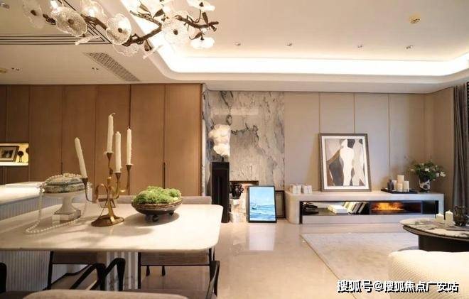 来到建面约112㎡3房2厅2卫样板房,设计主打海派风格,开放式厨房和西餐岛台,卫生间地面拼花,石材台面镀金龙头。标准的三开间户型,设计上将传统的过道改为餐厅空间,将公共区域做大了。