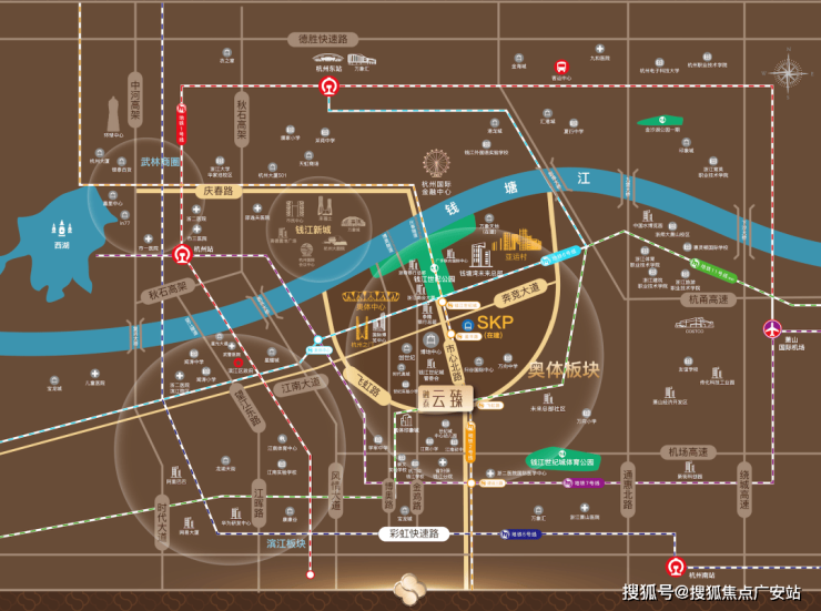本案位于杭州萧山钱江世纪城奥体板块,与钱江新城合称“杭州CBD双核”,集合板块内优质配套资源,繁华触手可及。