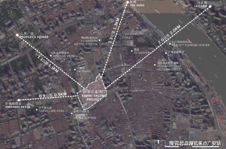 距新天地直线距离约900m,陆家嘴直线距离约2km,外滩直线距离约1.3km。