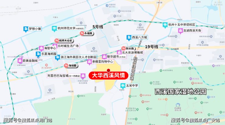 商业方面:世纪华联、北大资源博雅城、亲橙里、西溪八方城、龙湖西溪天街、梦想小镇等皆在侧。