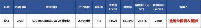 萃屿原墅官方电话:400-887-5663✔✔(官方售楼处预约看房热线)今年2月,上海2025一批次土拍中,国贸、金地、星狮联合体以8.1521亿元竞得松江SJC10008单元05a-24号地块,溢价率13.98%,成交楼面价26216元/m²,装修标准不小于2500元/㎡.