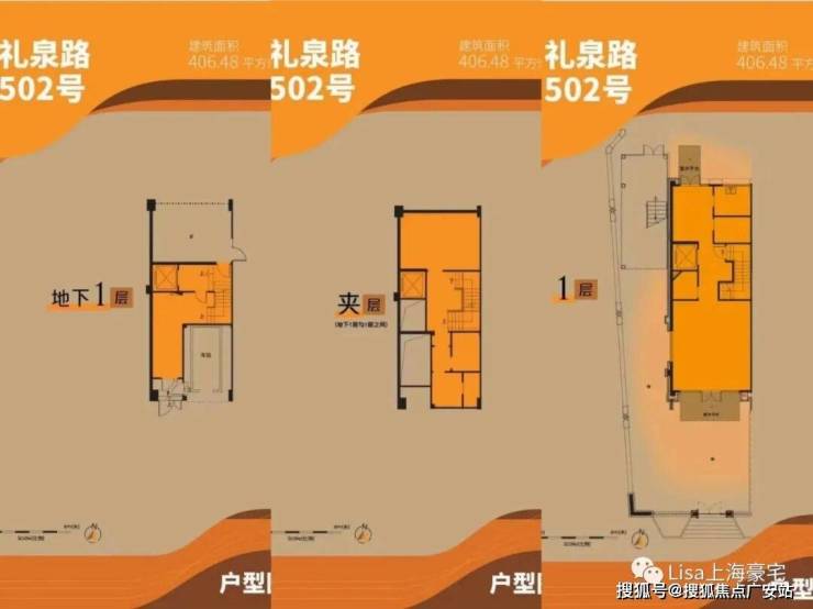 406㎡户型:建面约406平方米,含地下约95平方米,总价约3152.5万/套起。