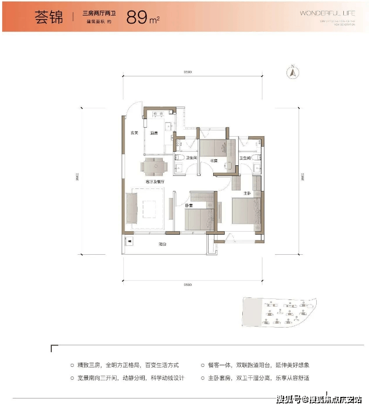 户型产品:主力户型为建面约88–89㎡三房两厅两卫,总价约249万起,定位刚需及刚改客群。