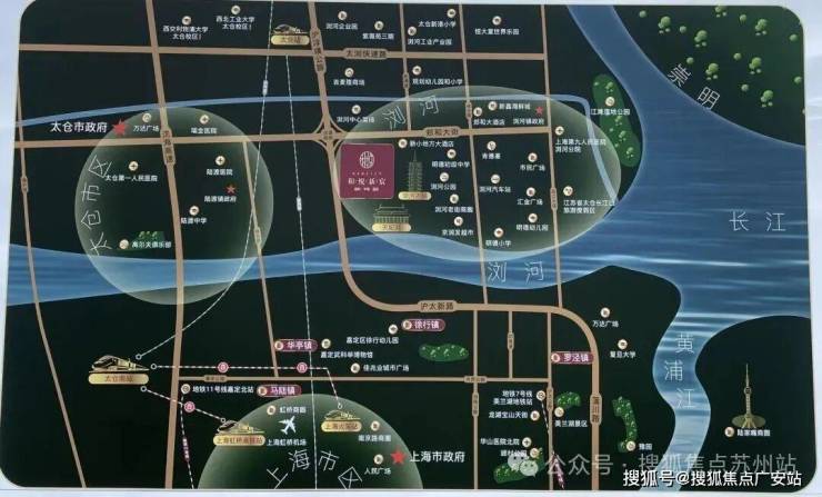 太仓南临上海,与宝山、嘉定仅一桥 之隔,作为上海沿江、沿海发展“出沪第一站”,承接上海中心城市,未来将打造滨江临沪国际化大都市,太仓于沪太双城中轴之上,构筑“一心两湖三环四园”城市生态体系;浏河作为长江口度假区核心区域,紧靠太仓三大天然氧吧之一江滩湿地公园,生态条件得天独厚、养生环境首屈一指,是宜居、 宜游、宜业的花园城市。