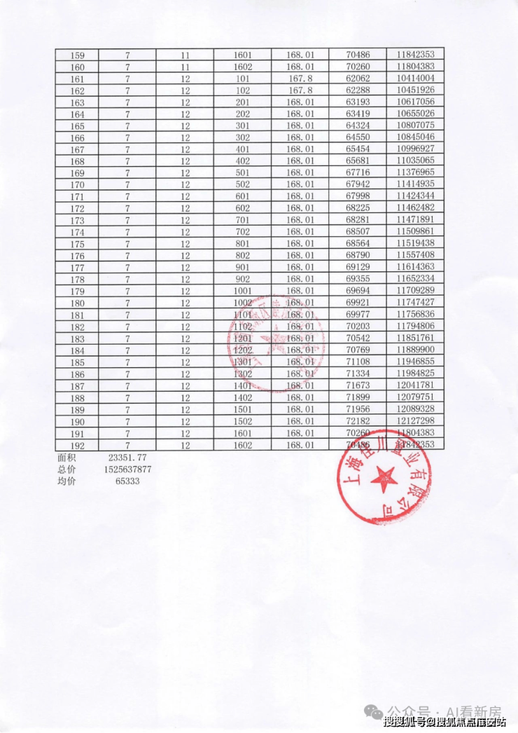 项目一房一价表▼