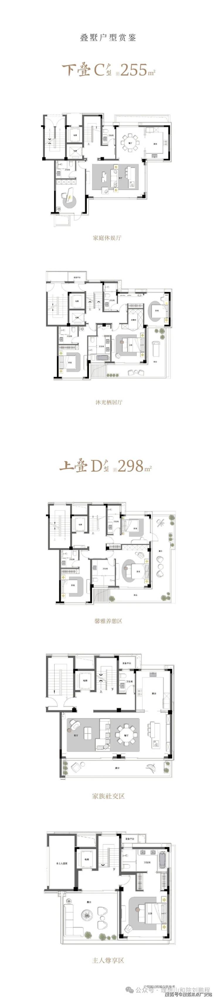 户型面积:排屋建面约338-358㎡、叠墅建面约215-297㎡