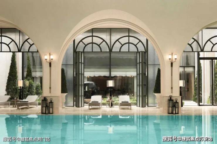 1.色调纯净,度假美学:立面以浅暖米黄石材为底,点缀金属、玻璃,焕新法式奢华艺术气质。罗马柱与宝瓶柱阵列、隽永雕花,凝练地中海浪漫神韵,恢宏典雅。